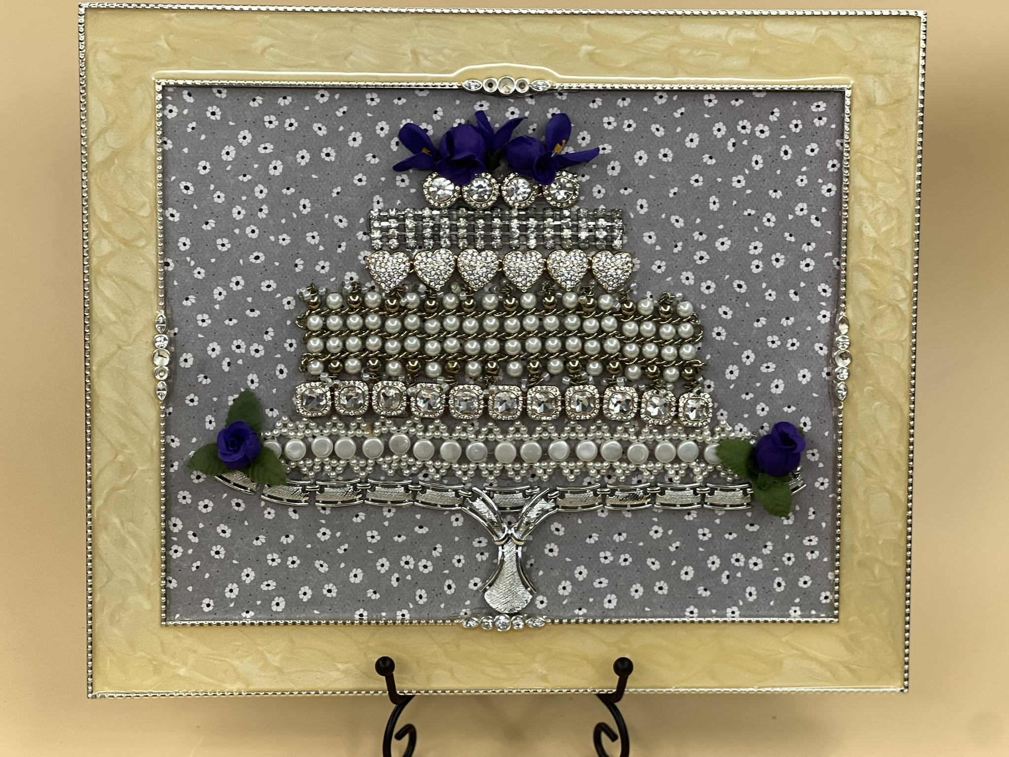 After retiring from over 30 years in healthcare, Marti decided to channel creativity into something truly special—transforming old jewelry into unique, handcrafted artwork. What began as personalized gifts for Christmas, birthdays, and Mother’s Day grew into a passion project: creating stunning 3D-style pictures embellished with upcycled jewelry.